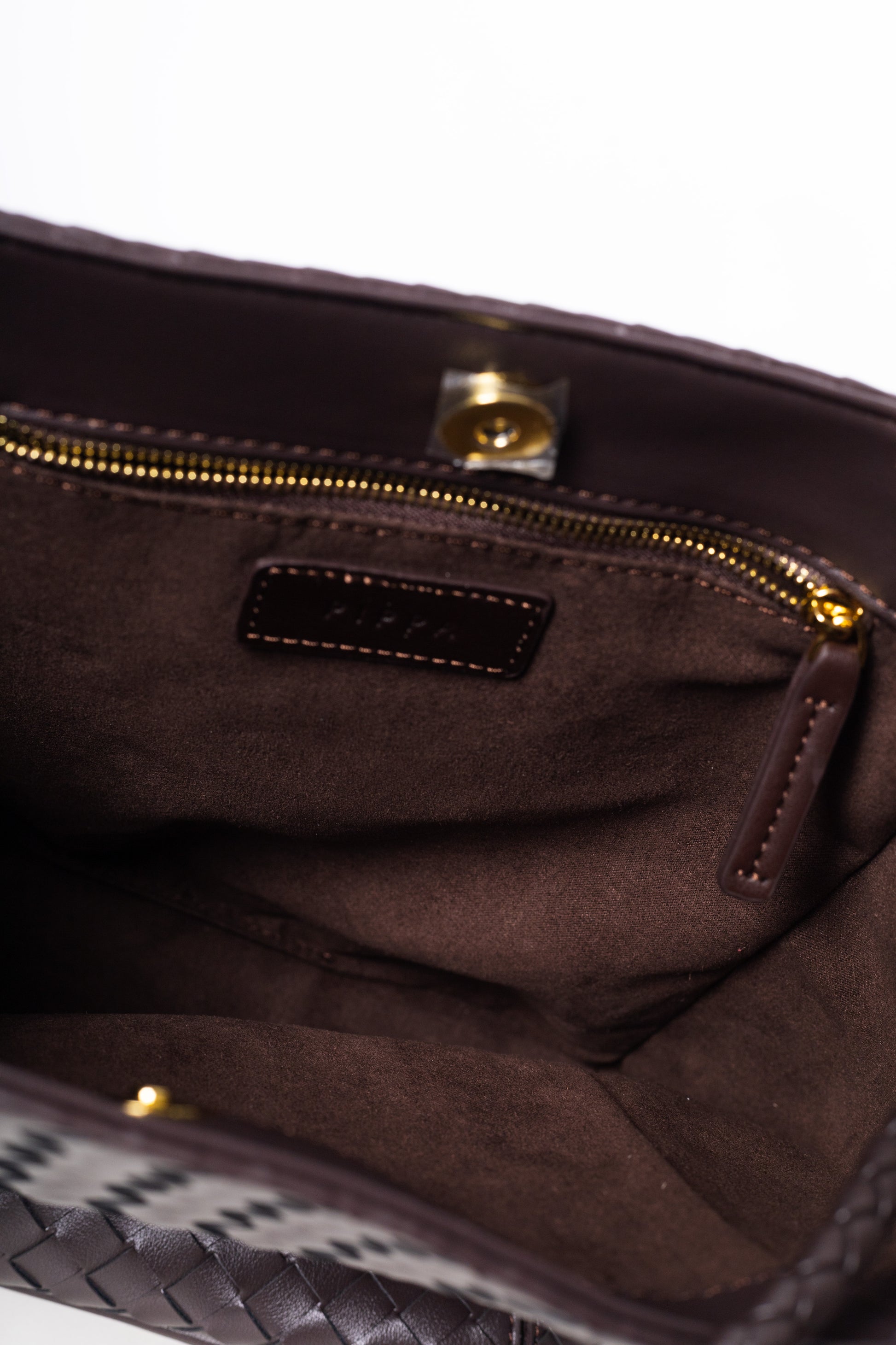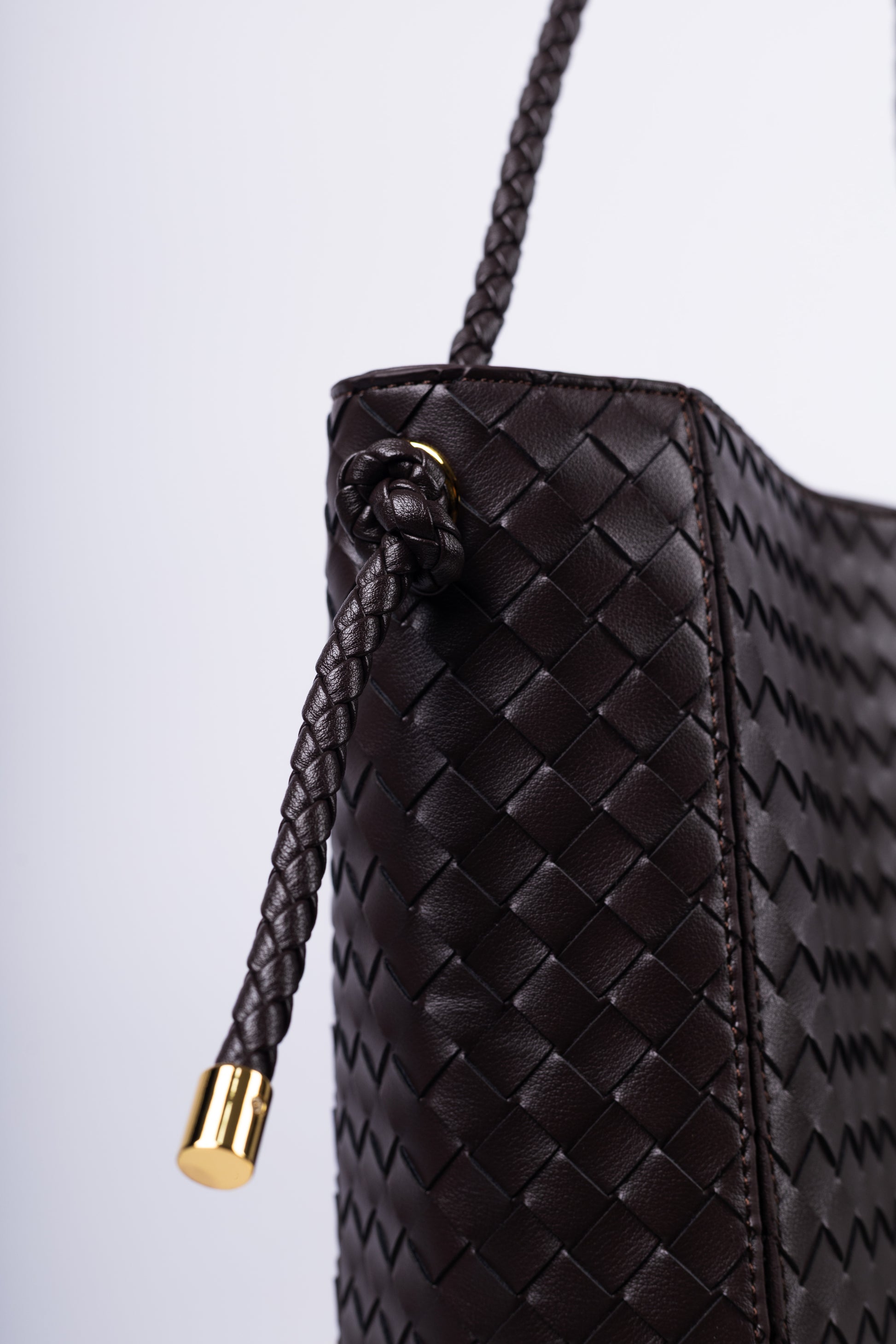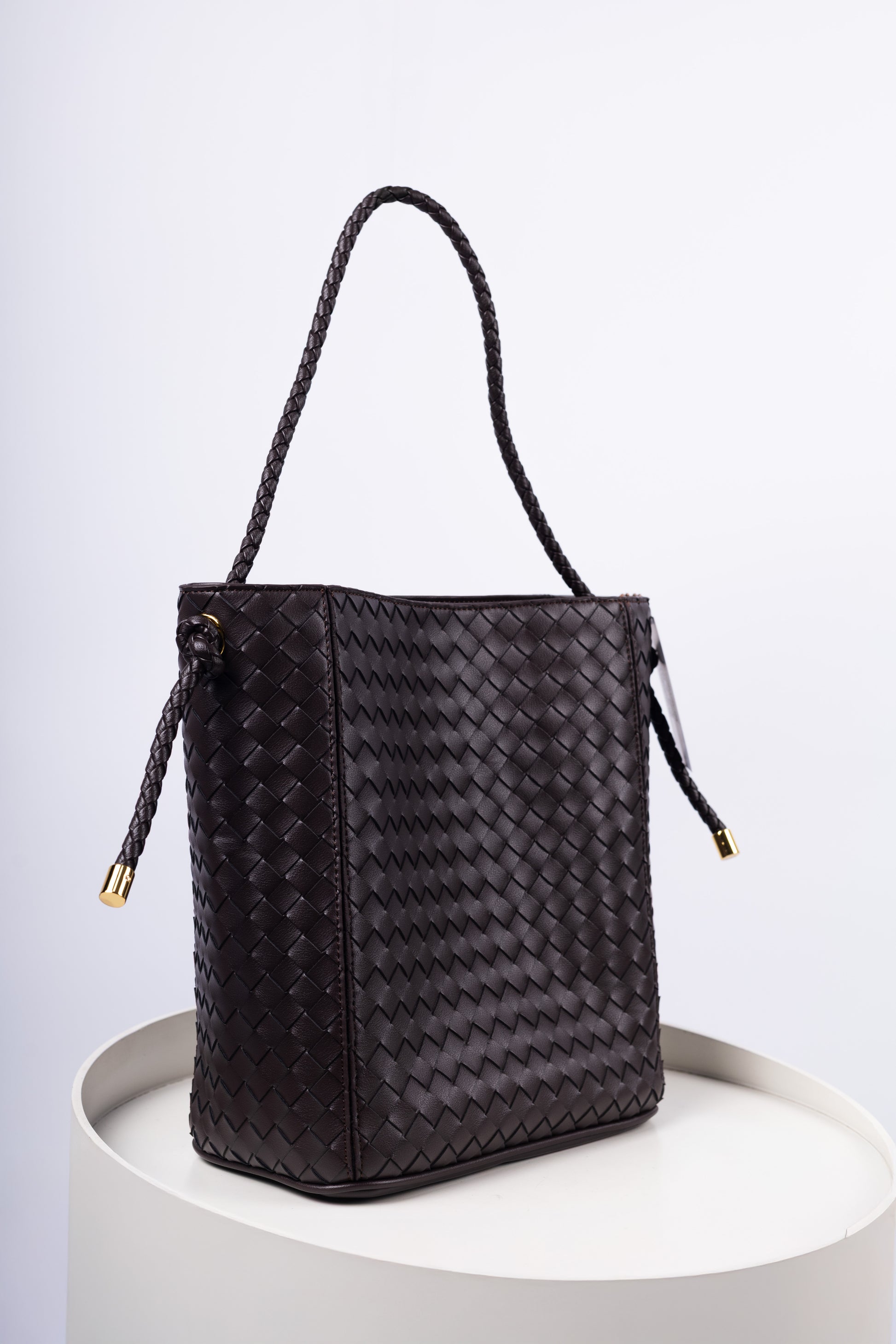 El modelo Córboba destaca por su meticuloso trenzado en cuero color negro, realzado con delicados detalles dorados que añaden un brillo sutil y elegante. Su estructura vertical y sus asas trenzadas aportan un aire artesanal y contemporáneo, manteniendo un equilibrio perfecto entre ligereza y presencia. Amplio, cómodo y refinado, es un bolso pensado para acompañarte con estilo y personalidad.