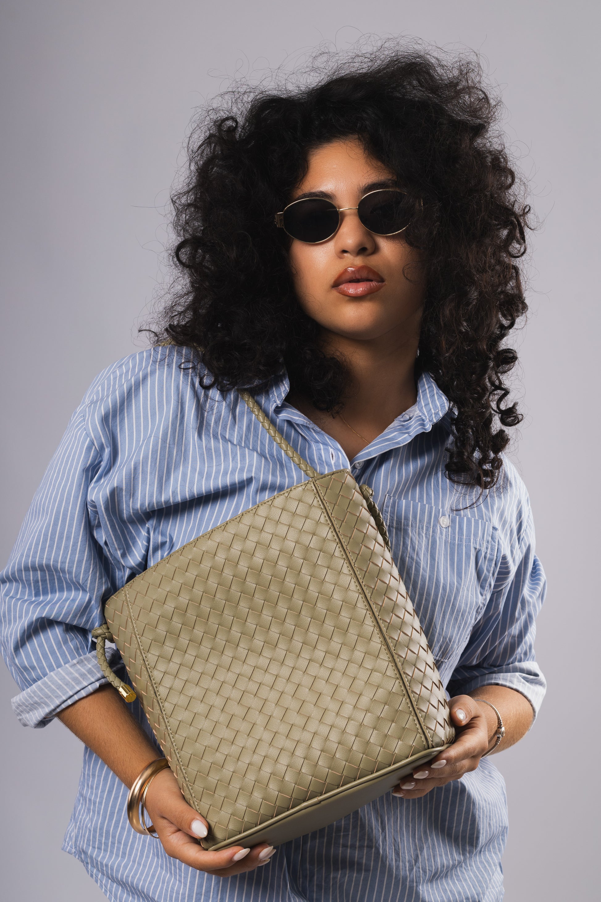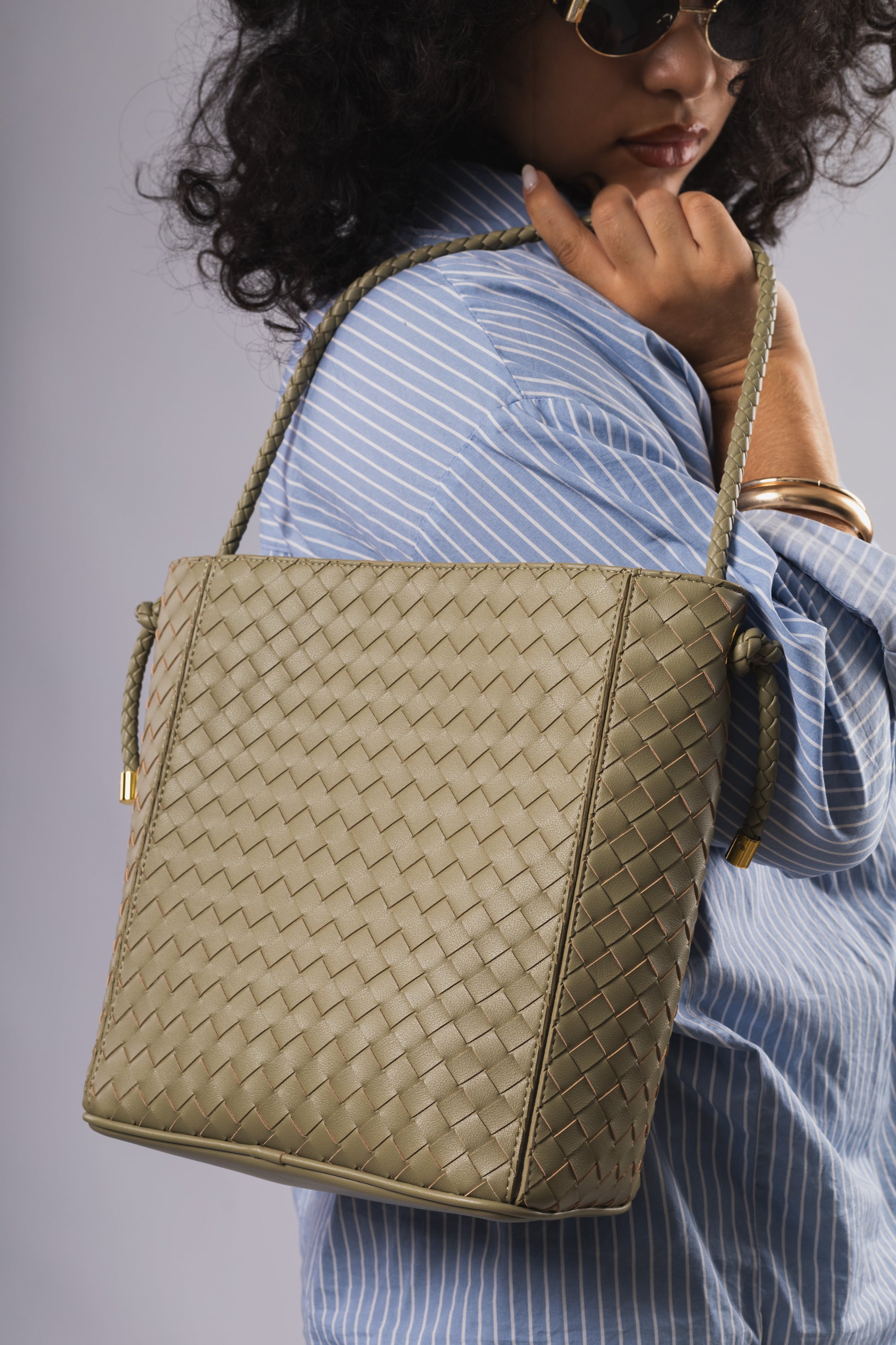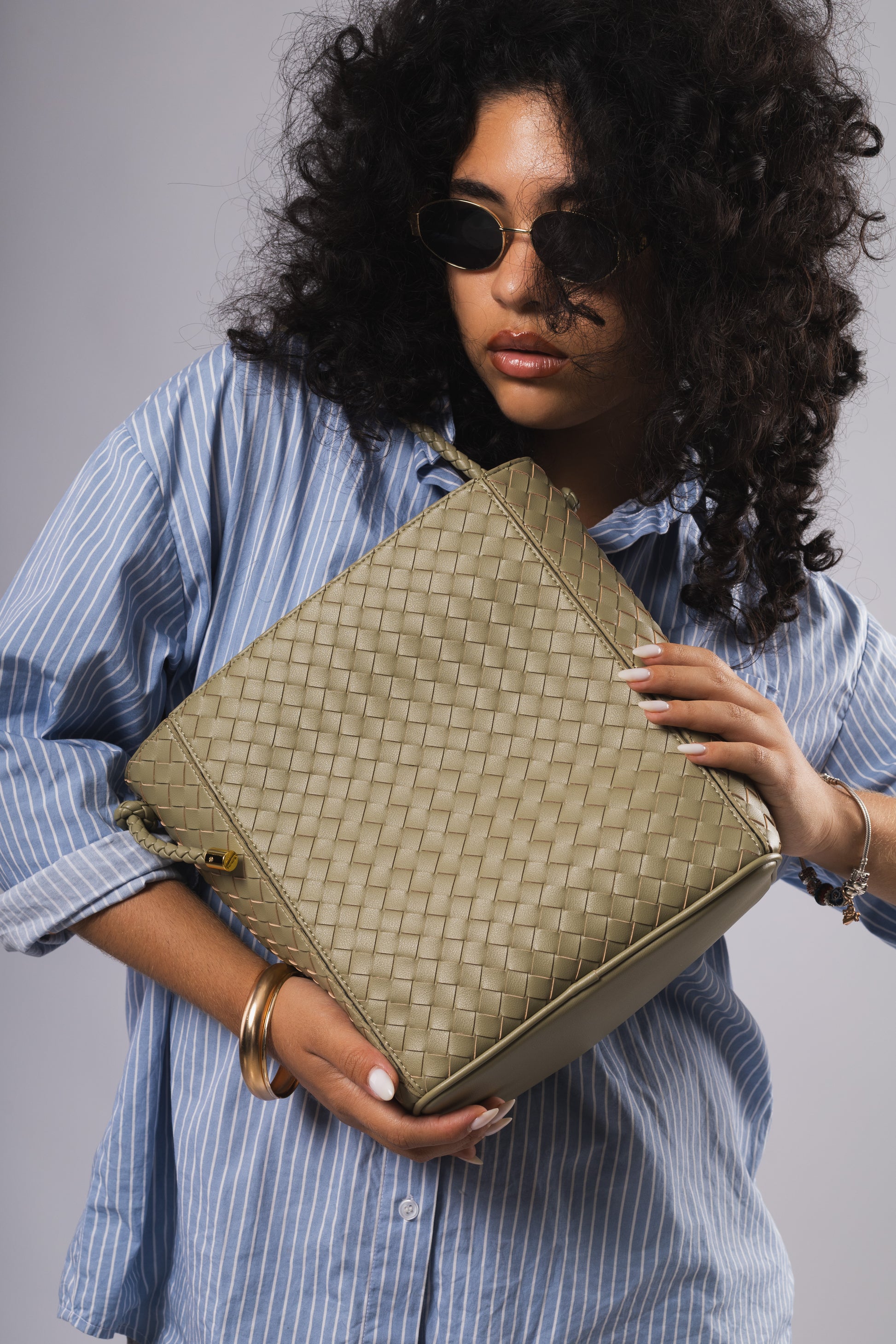 El modelo Córboba destaca por su meticuloso trenzado en cuero color verde pistacho, realzado con delicados detalles dorados que añaden un brillo sutil y elegante. Su estructura vertical y sus asas trenzadas aportan un aire artesanal y contemporáneo, manteniendo un equilibrio perfecto entre ligereza y presencia. Amplio, cómodo y refinado, es un bolso pensado para acompañarte con estilo y personalidad.